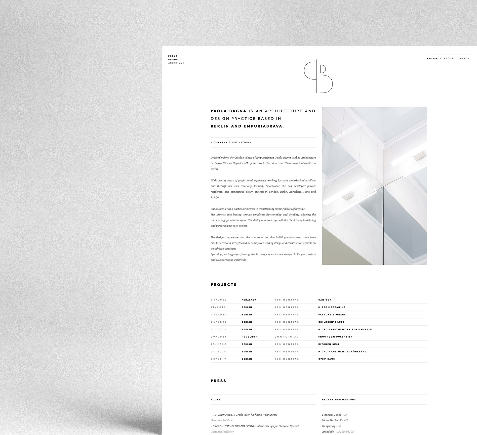 Paola Bagna, an architect based in Berlin, asked us to create a visual identity that reflects her way of transforming existing spaces through simplicity, functionality, and careful detailing.